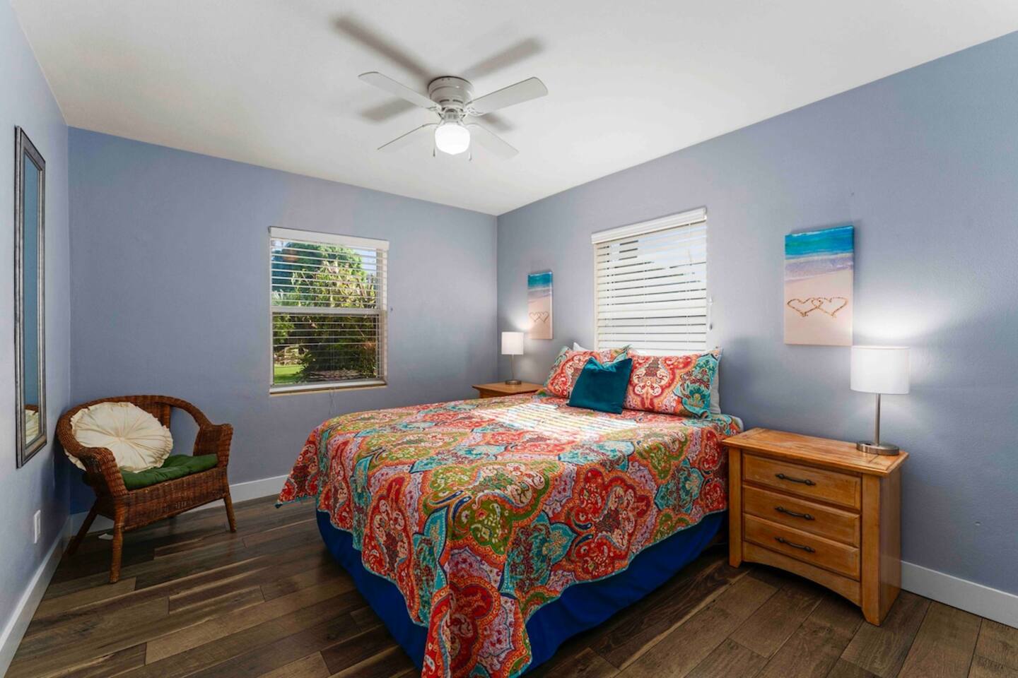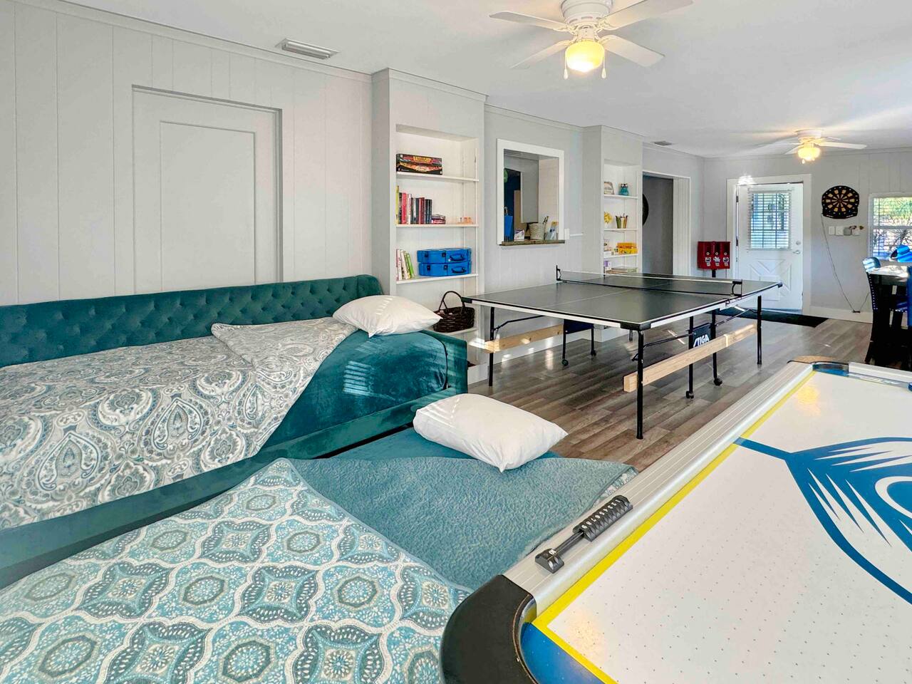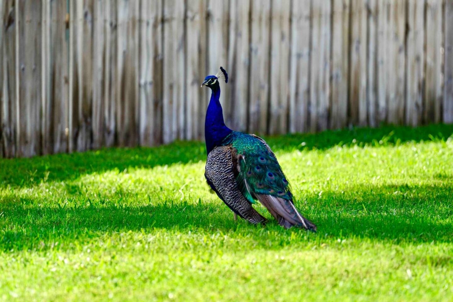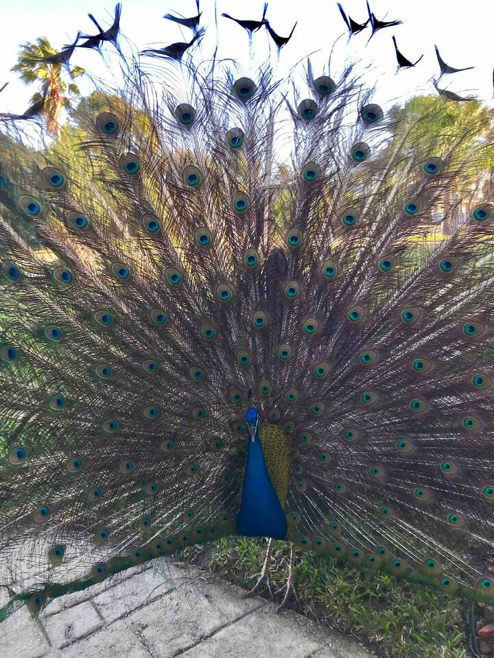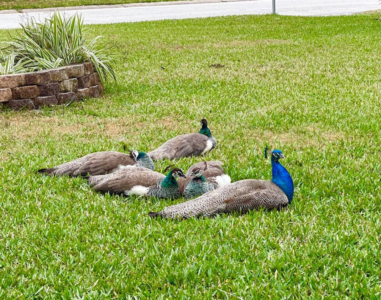 3 bedrooms, 2 bath, heated pool, sleeps 8, extended driveway and game room and outside grill. Front yard is usually shared with a local flock of Peacocks.