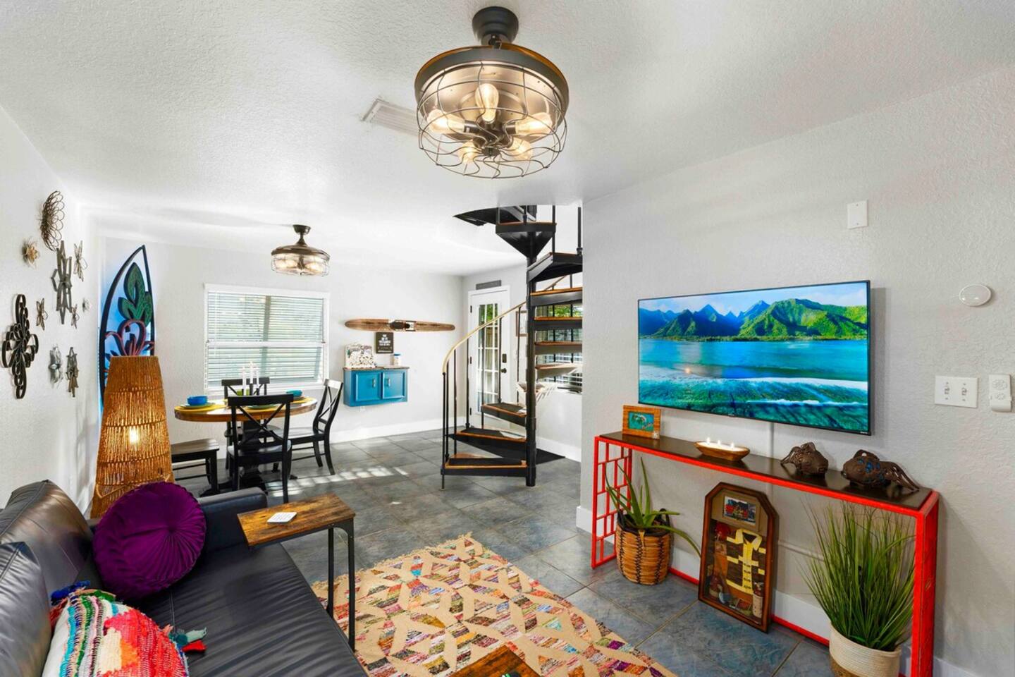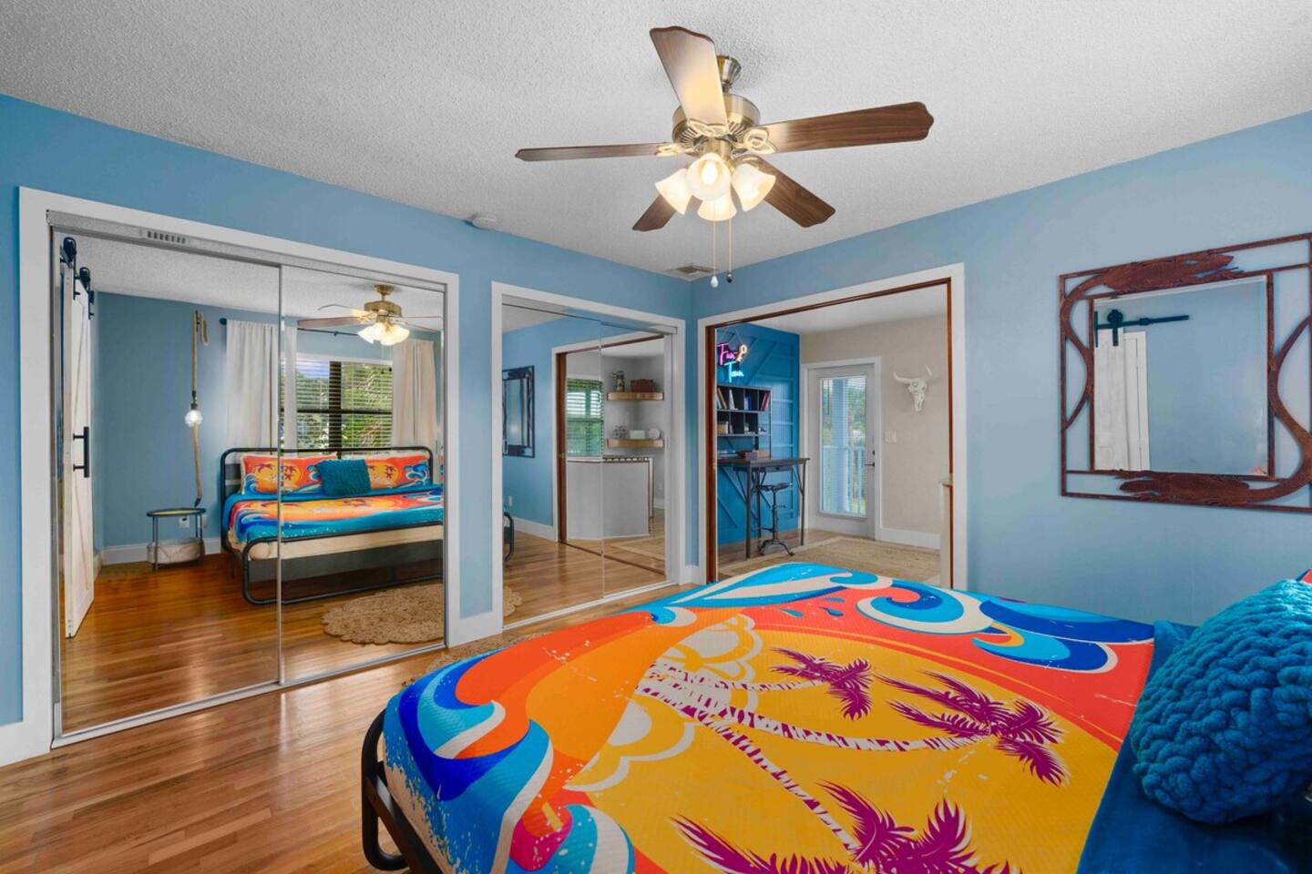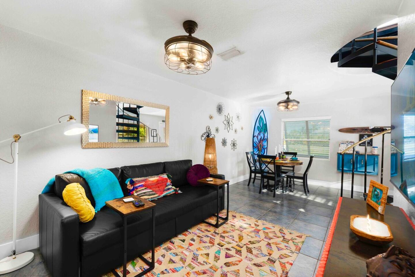 Welcome to Couples Retreat Discover our industrial-coastal villa, where unique décor meets local charm. Nestled in the heart of Cocoa Beach, this home offers a slice of surf history and the laid-back beach-town vibe the area is famous for. Just a short stroll away, you’ll find stunning sunrise and sunset views over the water, making it the perfect spot to unwind and reconnect. Start your mornings on the front balcony, savoring a cup of coffee as the gentle sea breeze sweeps in, with glimpses of the serene Indian River Lagoon. Beach Days & Local Adventures We’ve equipped you with everything you need for a perfect beach day, including chairs, an umbrella, towels, and boogie boards. Prefer exploring? Hop on our his-and-hers bikes and take a scenic 2.5-mile ride to downtown Cocoa Beach, where you’ll find vibrant nightlife, dining options, and entertainment. For a closer bite, fine dining is just at the end of the street, or walk south to enjoy Tex-Mex favorites at Taco City. Comfort & Convenience Back at Couples Retreat, our fully stocked kitchen, complete with a dishwasher and oven, makes dining in a breeze. Stream your favorite shows on the 50" Roku smart TV or enjoy a cozy movie night with the Firestick. Relaxation & Rest When it’s time to retire, your private king suite awaits upstairs, featuring a sliding door and a 12-inch memory foam mattress for the ultimate comfort. Hosting guests? The queen-size IKEA memory foam sleeper sofa downstairs ensures everyone enjoys a restful night. Perfect for couples or a small group of up to four, Couples Retreat promises a relaxing escape with a touch of Cocoa Beach magic.