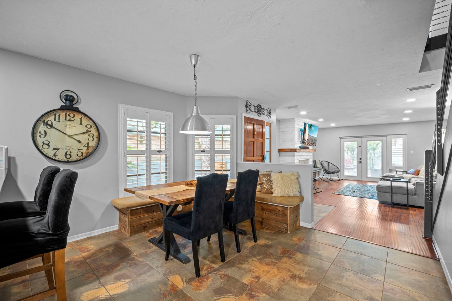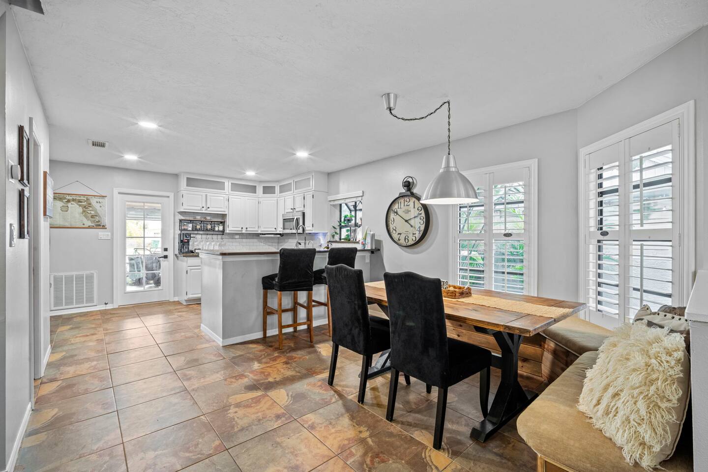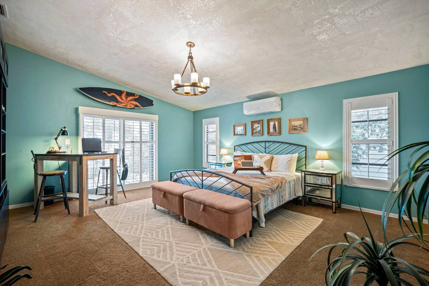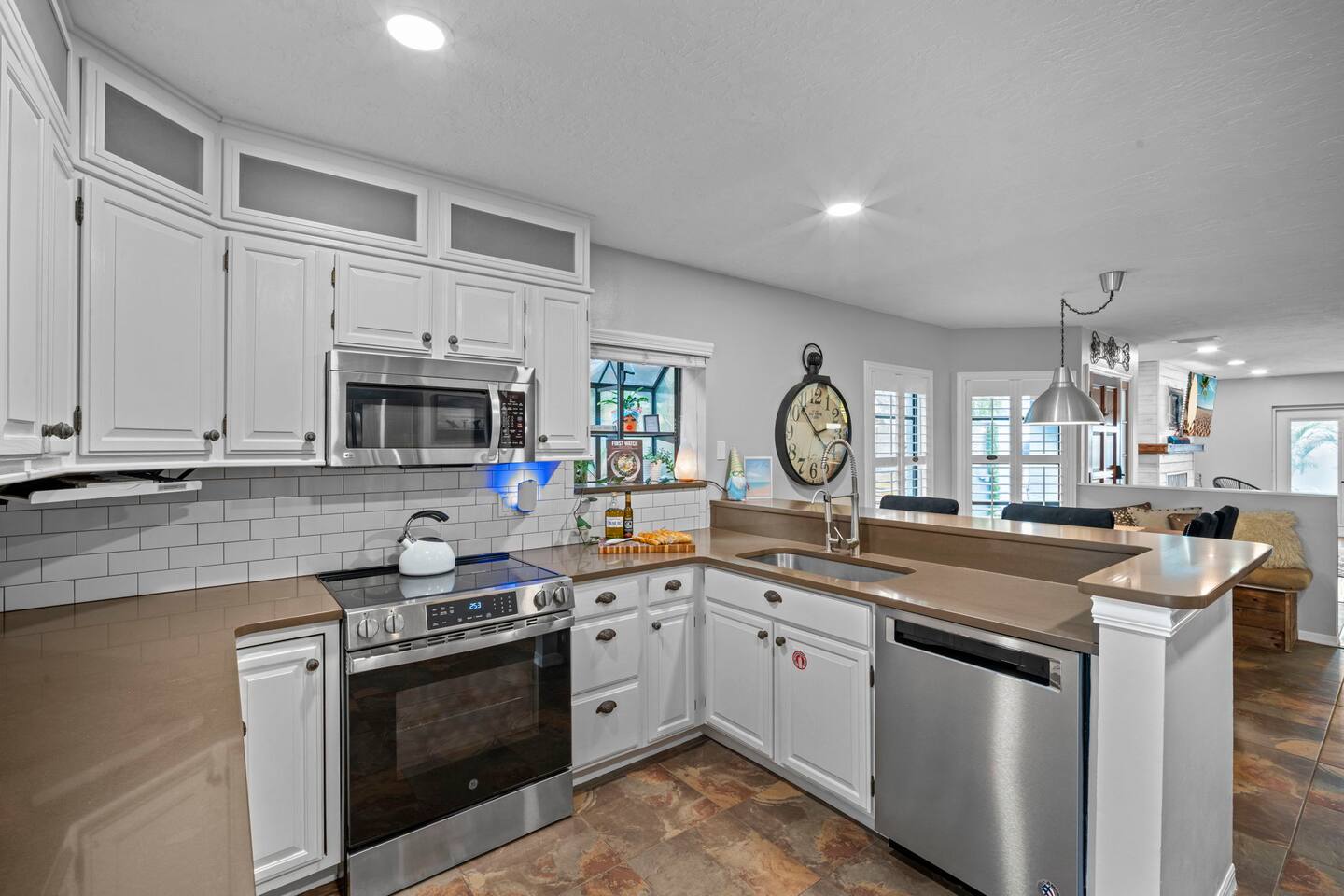 Guest access is simple — you’ll receive your key code in the check-in instructions sent here in the thread (usually the last 4 digits of your phone number). You’ll have full access to the entire home, including all outdoor spaces, except for one locked owner’s closet that holds property items. Driveway parking is available for up to 3 compact cars, and please note there is no street parking.
