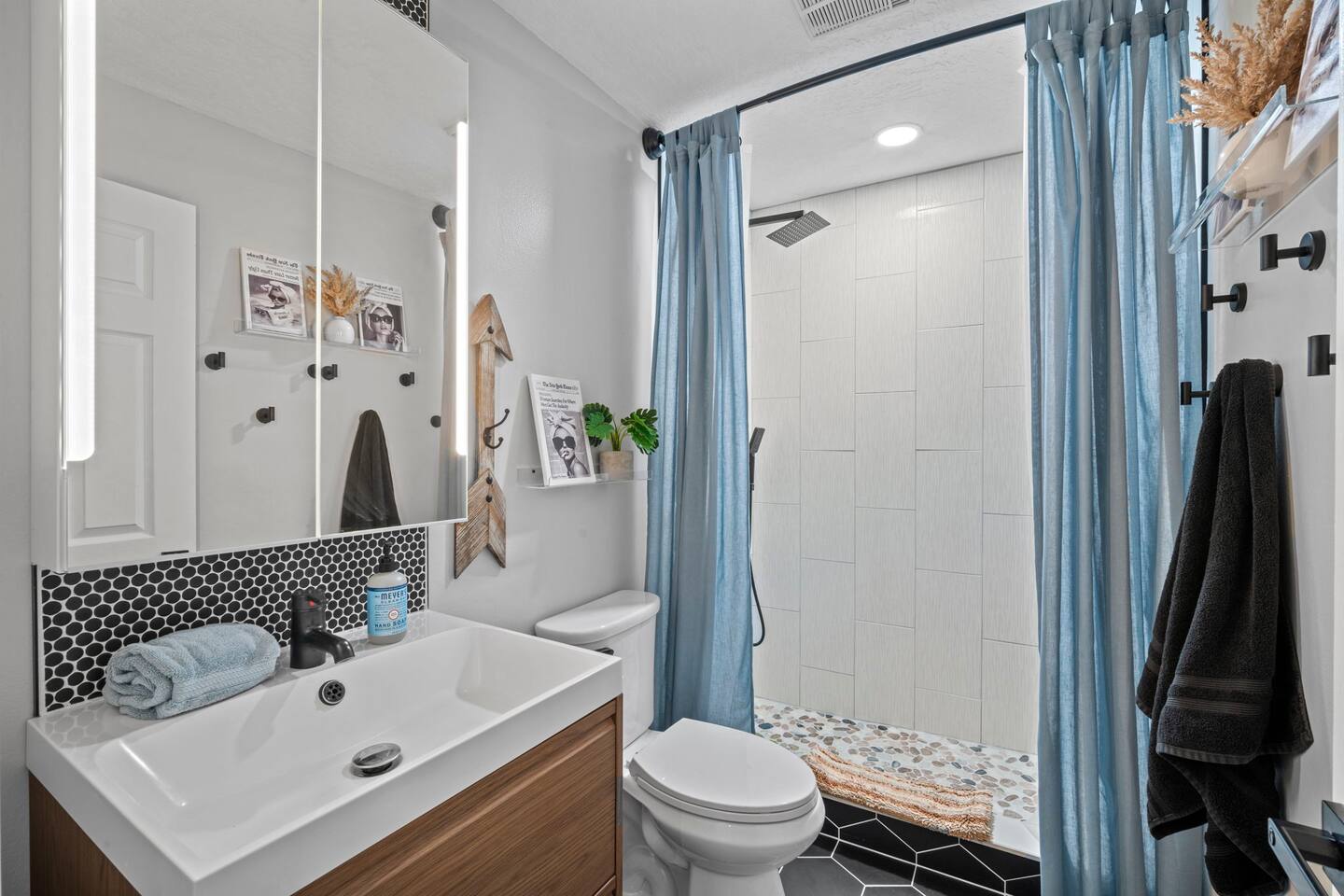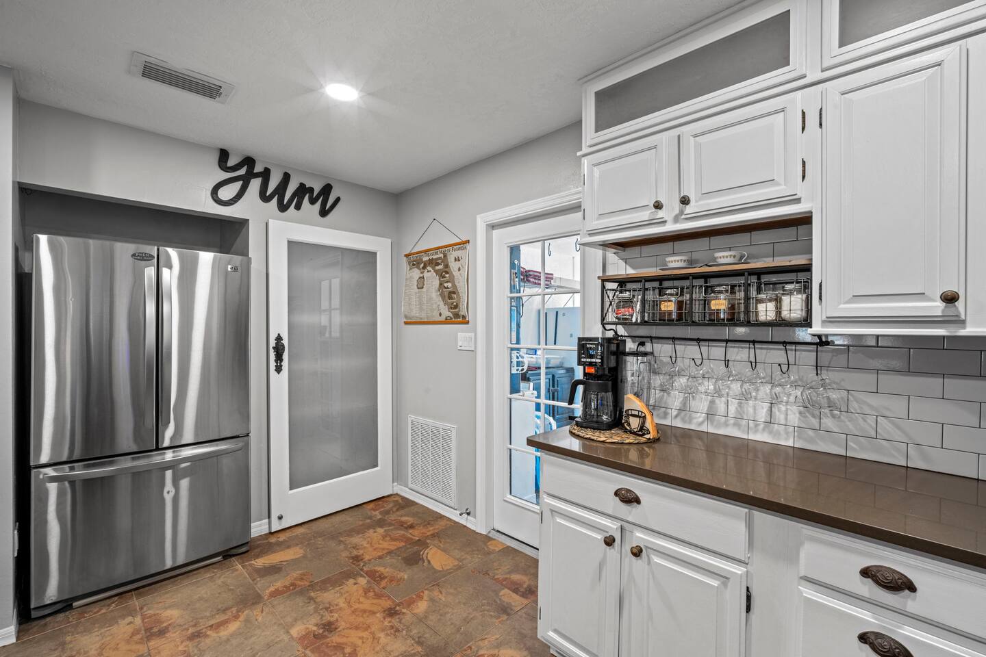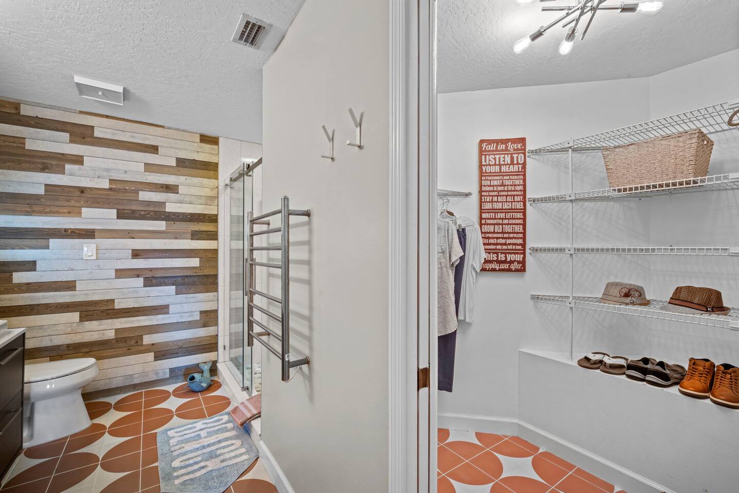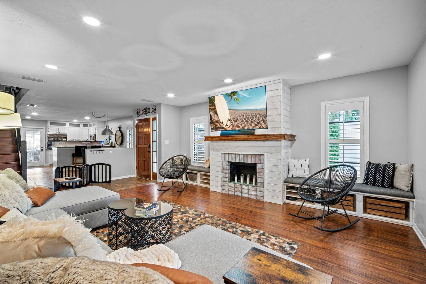 Guest access is simple — you’ll receive your key code in the check-in instructions sent here in the thread (usually the last 4 digits of your phone number). You’ll have full access to the entire home, including all outdoor spaces, except for one locked owner’s closet that holds property items. Driveway parking is available for up to 3 compact cars, and please note there is no street parking.